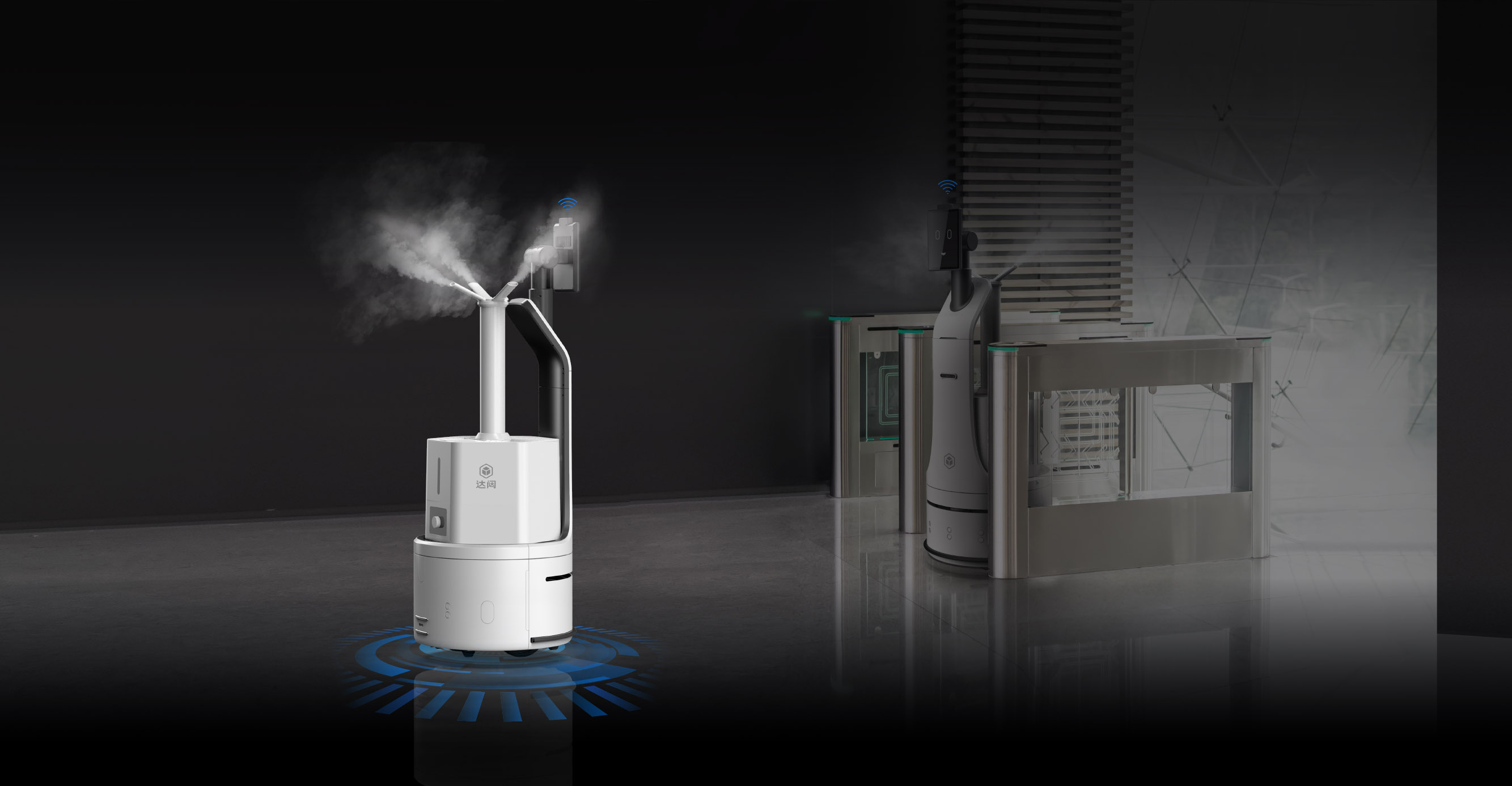 选配闸机、梯控模组,实现自主过闸机、自主乘梯等功能,极大拓展服务面积;更可更换不同雾化喷头,满足多样消毒需求